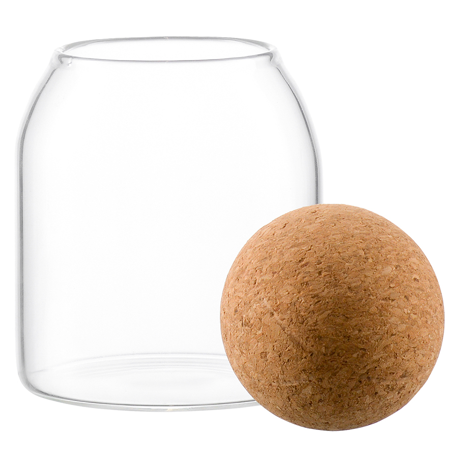 - Боросиликатное стекло отличается высокой устойчивостью к температурным воздействиям и механическим повреждениям. - Материал не содержит в составе вредных соединений, является безопасным для здоровья и идеально подходит для контакта с пищевыми продуктами. - Крышка из натуральной пробки в виде шара делает дизайн интересным, обеспечивает удобное и практичное хранение.