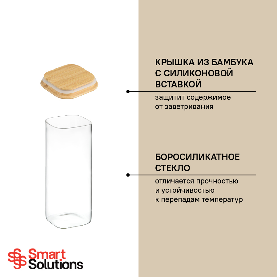 Боросиликатное стекло отличается прочностью и устойчивостью к перепадам температур. Крышка с силиконовой вставкой защитит содержимое от заветривания.