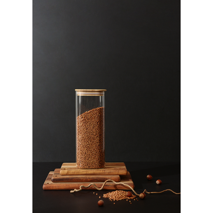 Банка для хранения в минималистичном дизайне поможет организовать порядок на кухне.