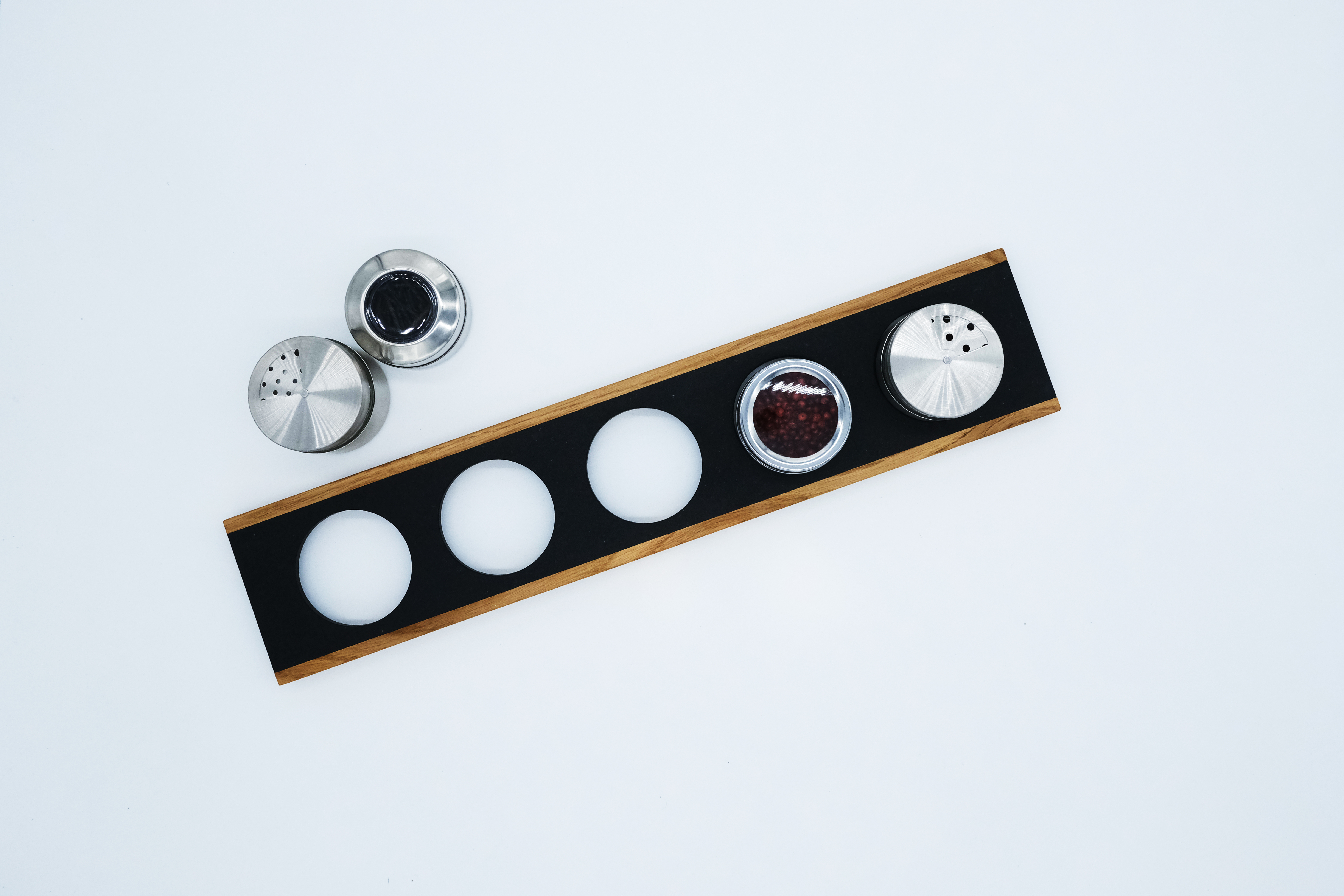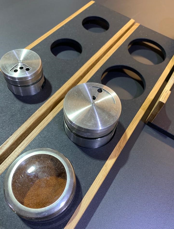 Наслаждайтесь готовкой на кухне с емкостями для специй из нержавеющей стали.