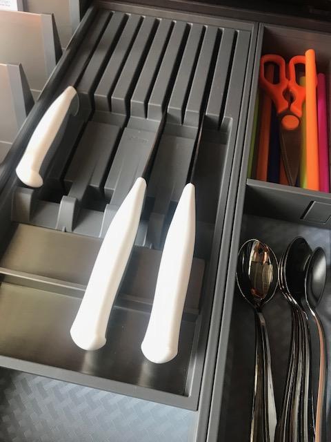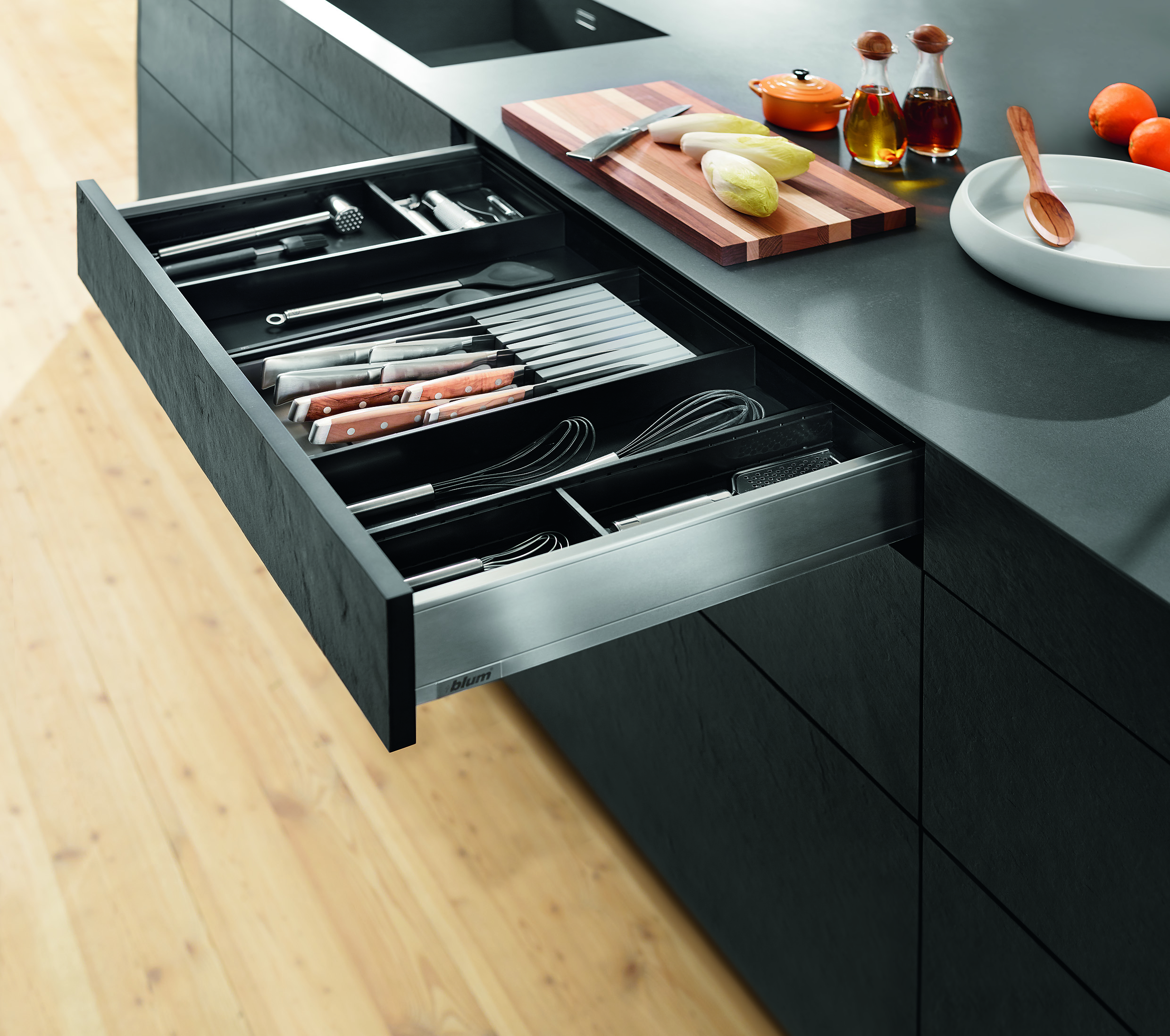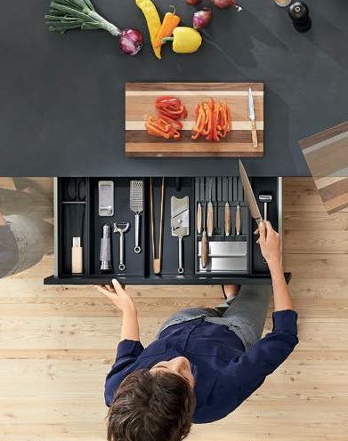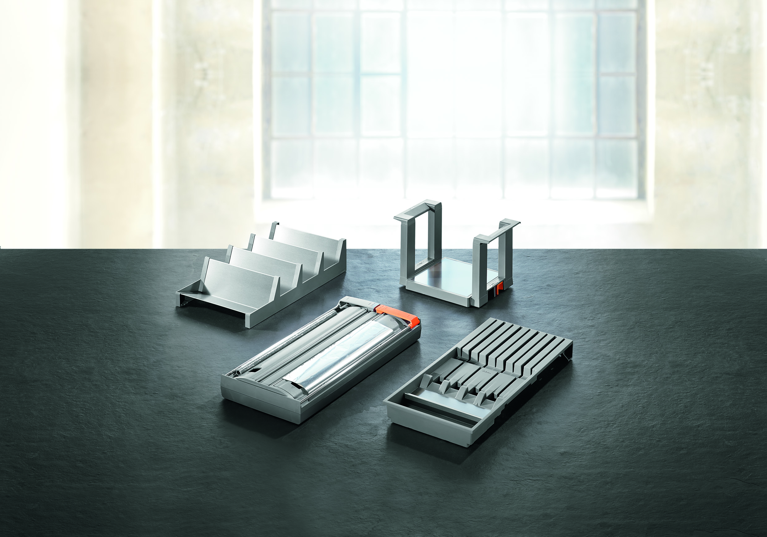 Элегантные аксессуары AMBIA-LINE объединяют в себе высокое качество, утонченный дизайн и безупречную функциональность. Держатели ножей, специй и тарелок, а также приспособление для резки пленки и фольги помогут поддерживать идеальный порядок на Вашей кухне. Все кухонные принадлежности наглядно размещаются в ящике и при этом всегда под рукой, что позволяет избежать лишних действий на кухне.