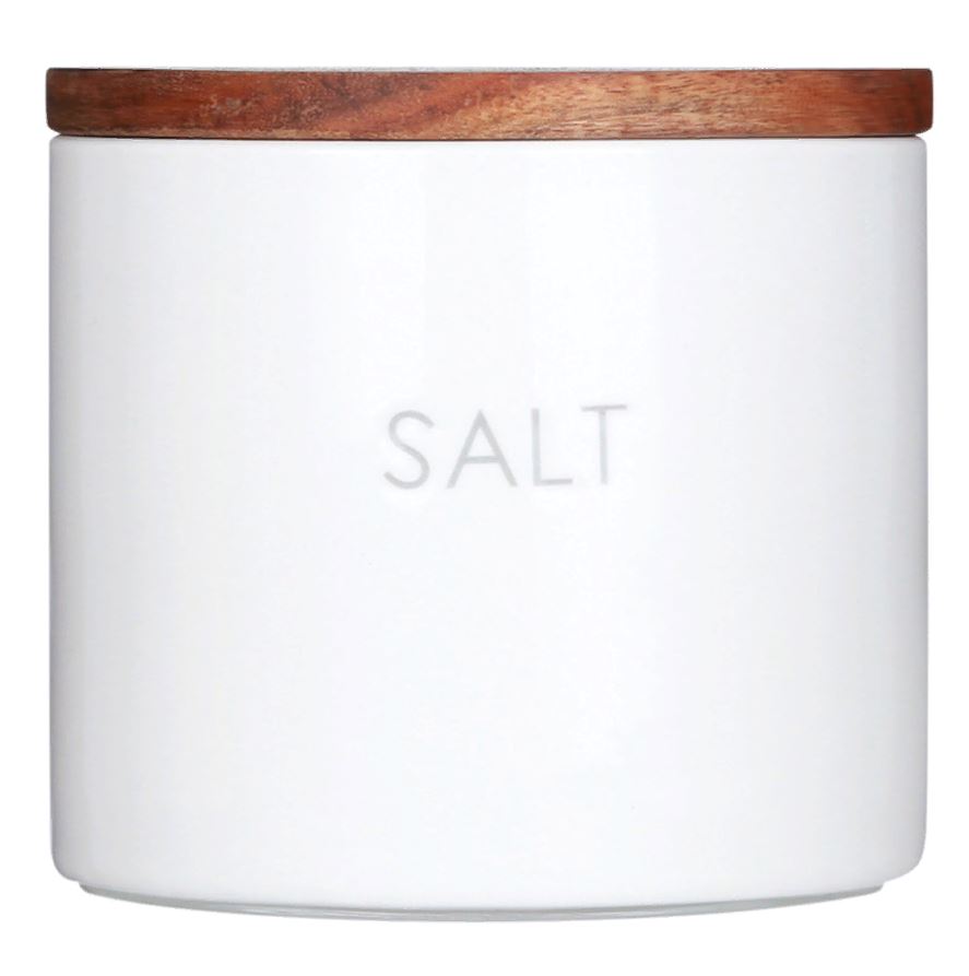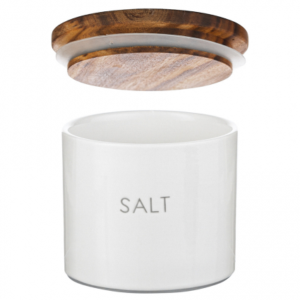 Емкость для хранения соли 0,4 л керамическая, дерево