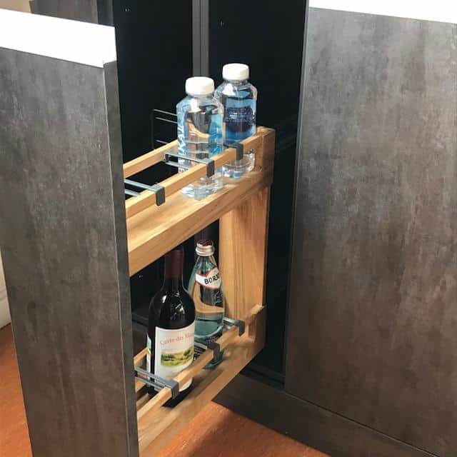 Бутылочница двухуровневая из массива дуба с рейлингом TETRIS в шкаф 150 мм