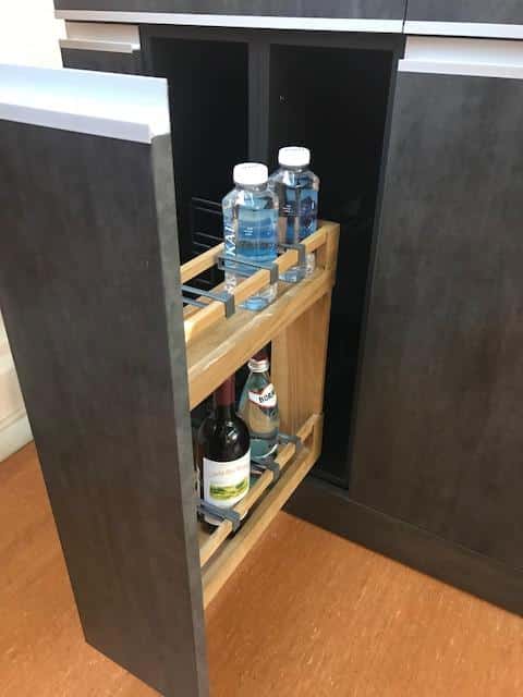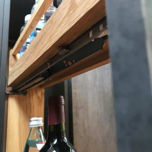 Бутылочница с направляющими полного выдвижения с доводчиком TANDEM от BLUM. Выпускается в левостороннем и правостороннем вариантах. Крепление к стенке шкафа боковое.
