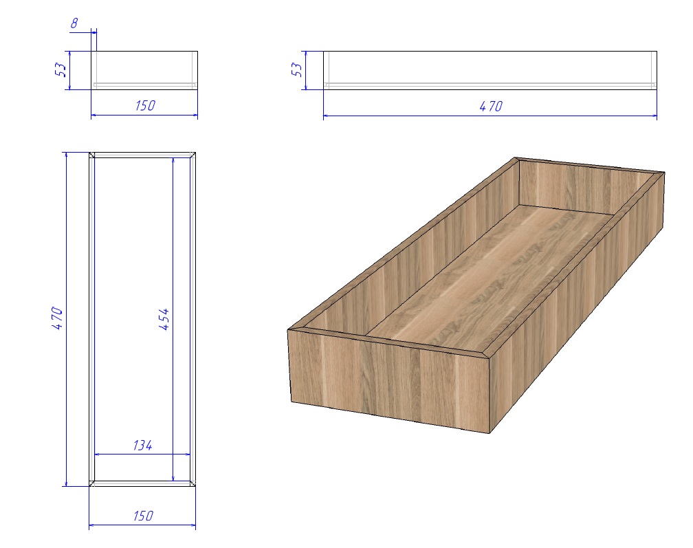 Размеры: ширина 150 мм, длина 470 мм, высота 53 мм