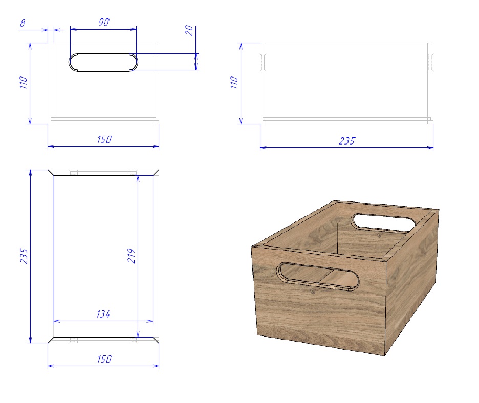 Размеры: ширина 150 мм, длина 235 мм, высота 110 мм