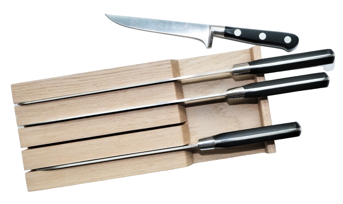 Ложемент для ножей изготовлен из единого цельного куска массива дуба для красоты и долговечности!