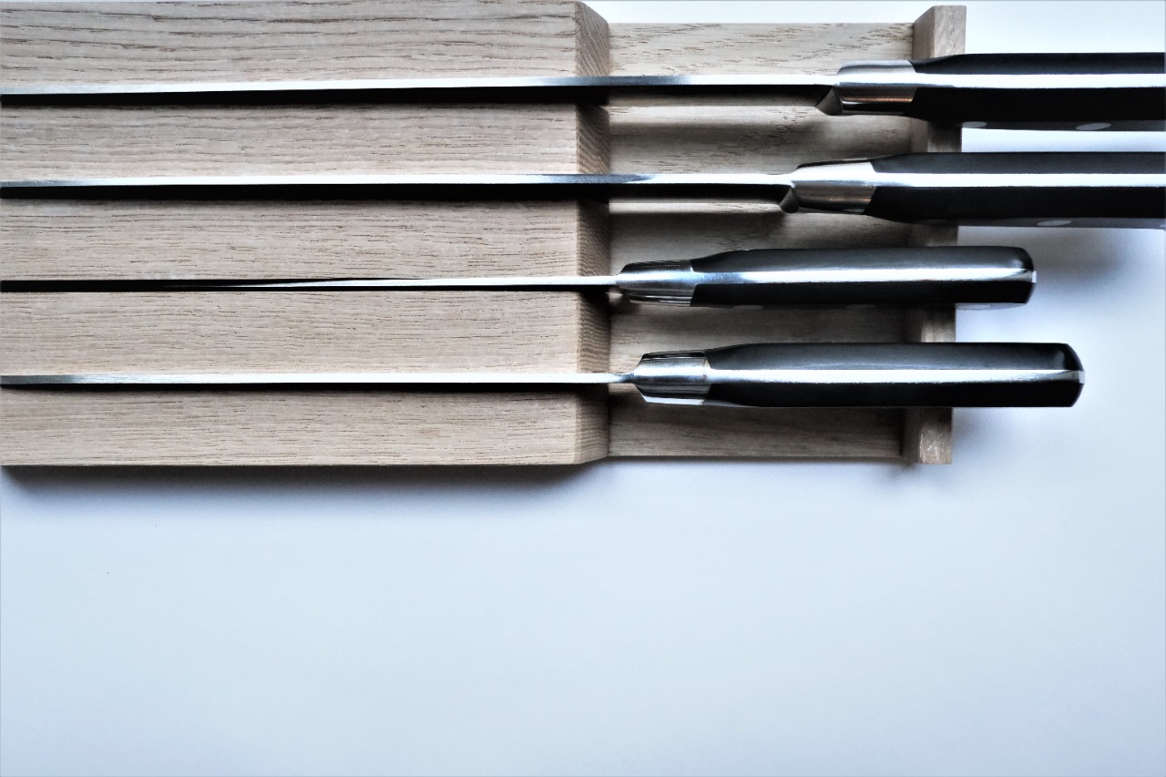 Держатель TETRIS деревянный для 4-х ножей дуб белый.