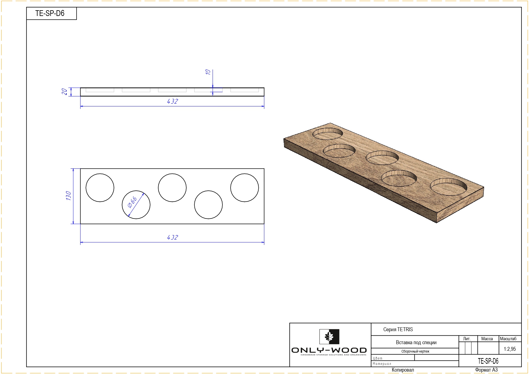 Держатель TETRIS для 5 баночек специй D66 темный орех.