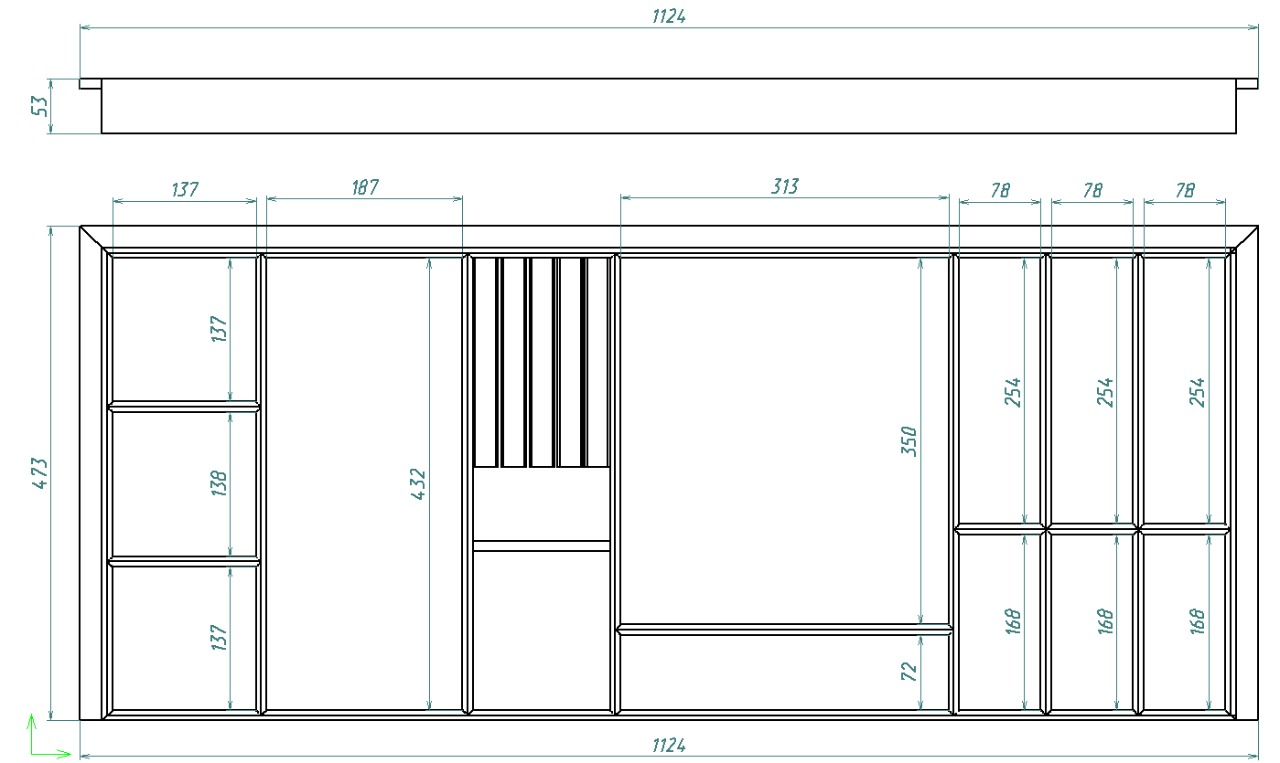 - Вкладыш-лоток подходит для выдвижных ящиков глубиной 500 мм