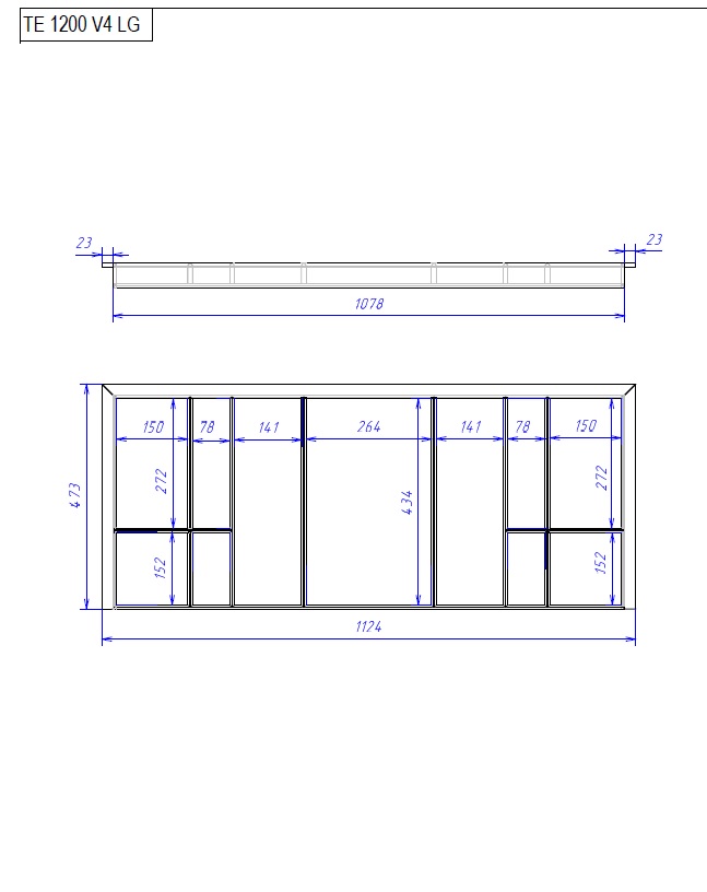 - Лоток в ящик на ширину фасада 1200 мм (для внутреннего проема 1164-1168 мм)