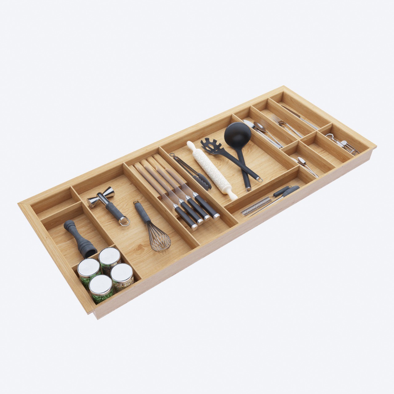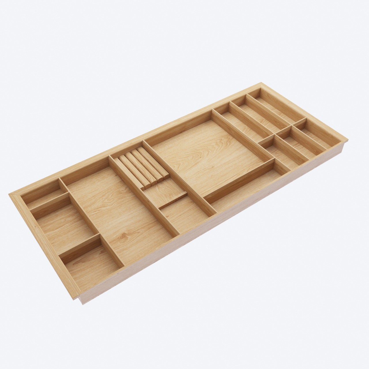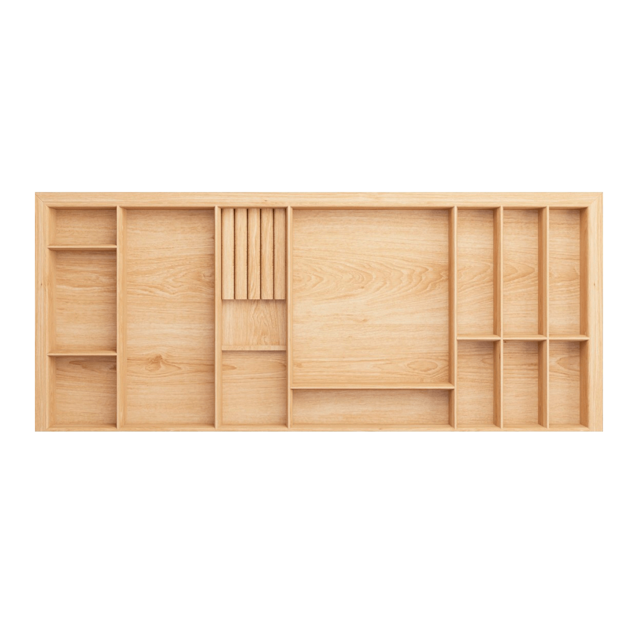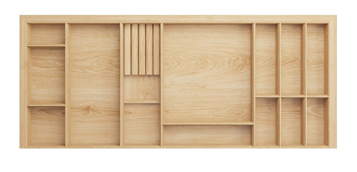 Деревянный лоток TETRIS 1200V3 из массива дуба для столовых приборов в низкий ящик на ширину фасада 1200 мм цвет дуб светлый.