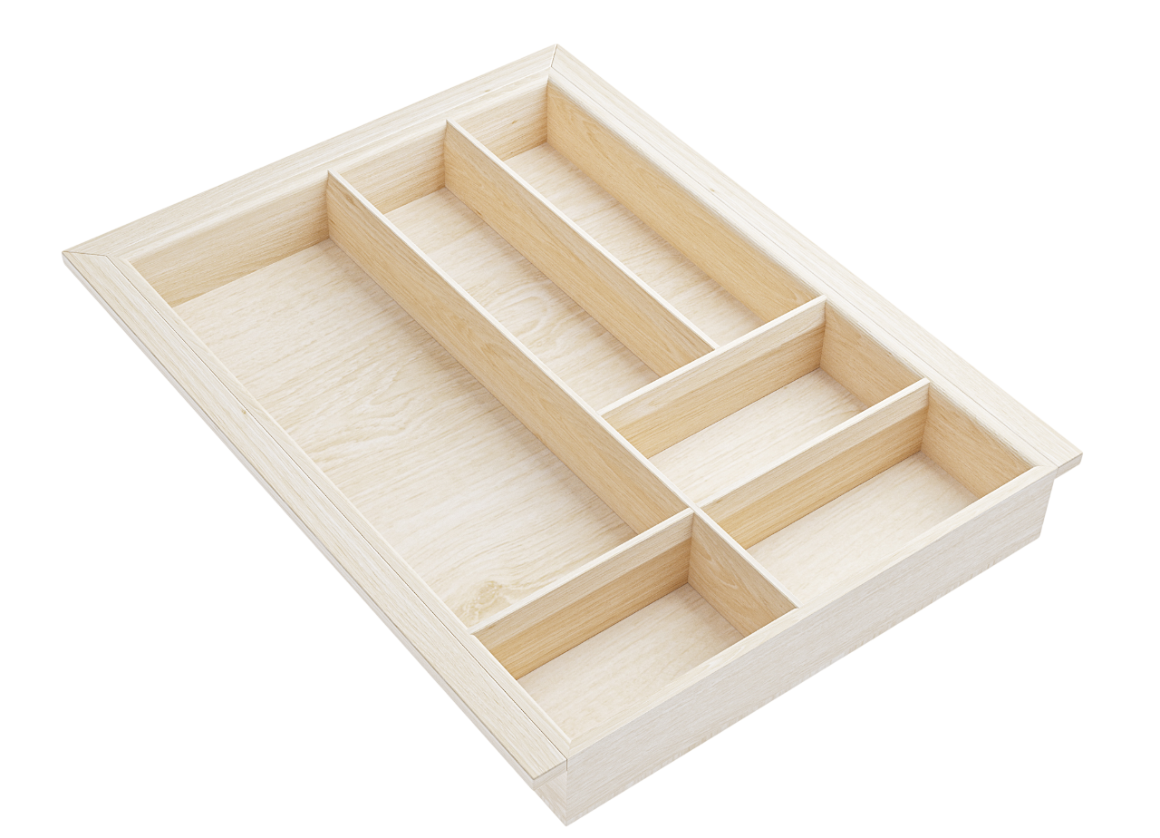 Элегантный лоток-вкладыш разработан и вручную изготовлен для ящиков разных систем глубиной 500 мм в корпус шириной 450 мм. Лоток в размер ящика - заполняет все внутреннее пространство вашего выдвижного ящика. Лоток предназначен для хранения столовых приборов, мелочей и кухонного инвентаря. Изделие выполнено из натуральных высококачественных материалов безопасных в применении на кухне.