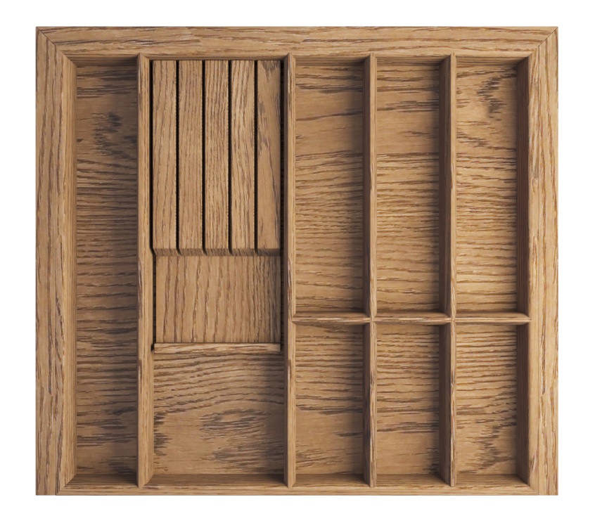 Деревянный лоток TETRIS из массива дуба для столовых приборов с держателем 4 ножей в низкий ящик глубиной 500 мм на ширину фасада 600 мм цвет дуб рустик.
