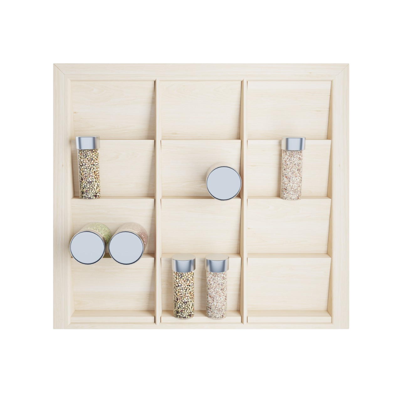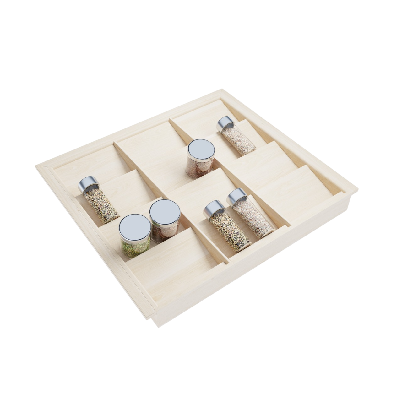 Деревянный лоток TETRIS 600V5 на 4 уровня для специй из массива дуба в низкий выдвижной ящик глубиной 500 мм для ширины фасада 600 мм цвет дуб белый