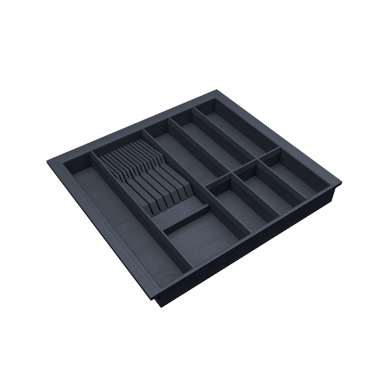 Лоток для столовых приборов в базу 600 для оснащения низких кухонных ящиков. Элегантный лоток-вкладыш разработан и вручную изготовлен для ящиков разных систем глубиной 500 мм в корпус шириной 600 мм. Лоток предназначен для хранения столовых приборов и кухонного инвентаря. Вы по желанию можете добавить держатели ножей и специй. Лоток изготовлен из высококачественных материалов безопасных в применении на кухне.