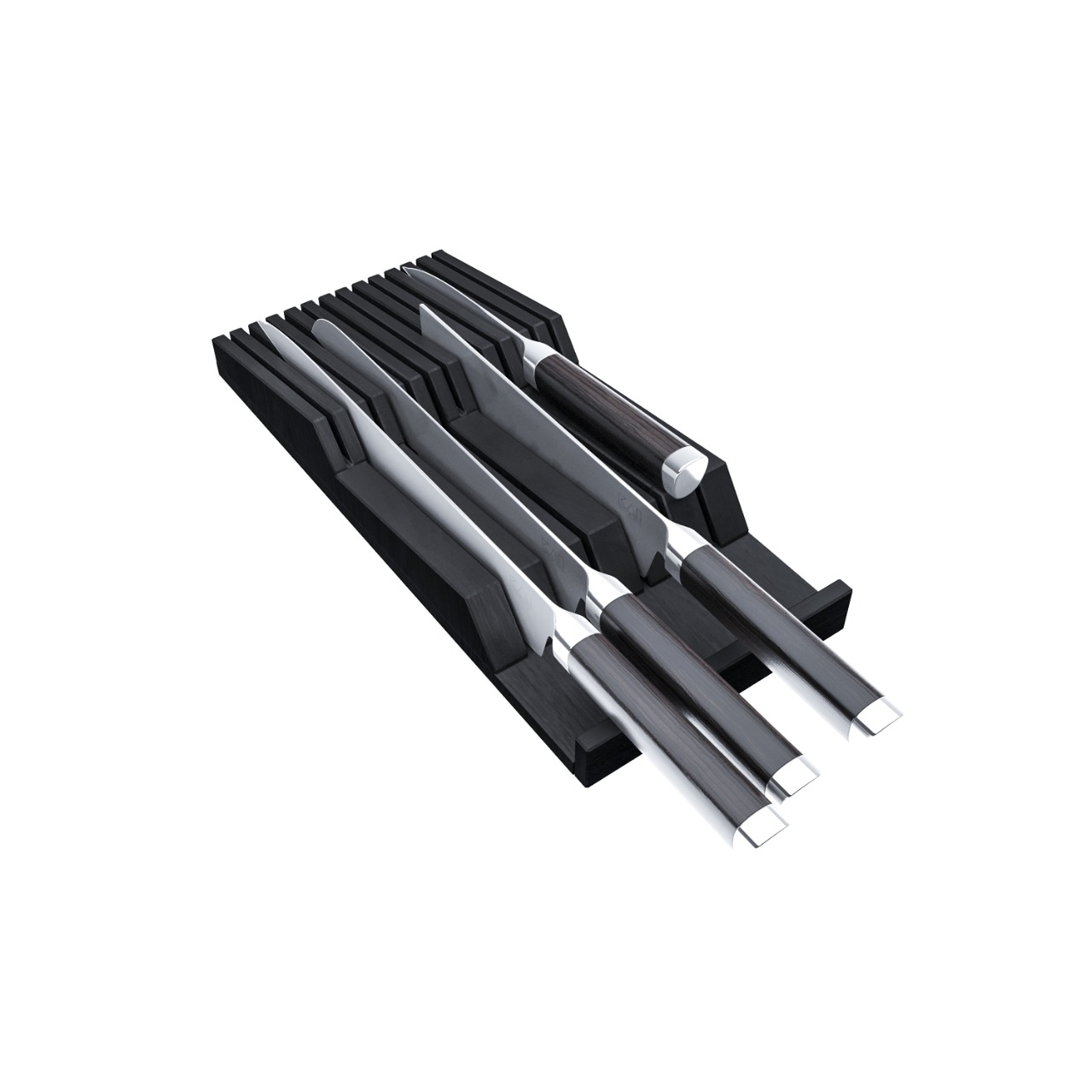 Деревянный лоток TETRIS из массива дуба для столовых приборов с держателем 13 ножей в низкий ящик глубиной 500 мм на ширину фасада 600 мм цвет дуб черный.