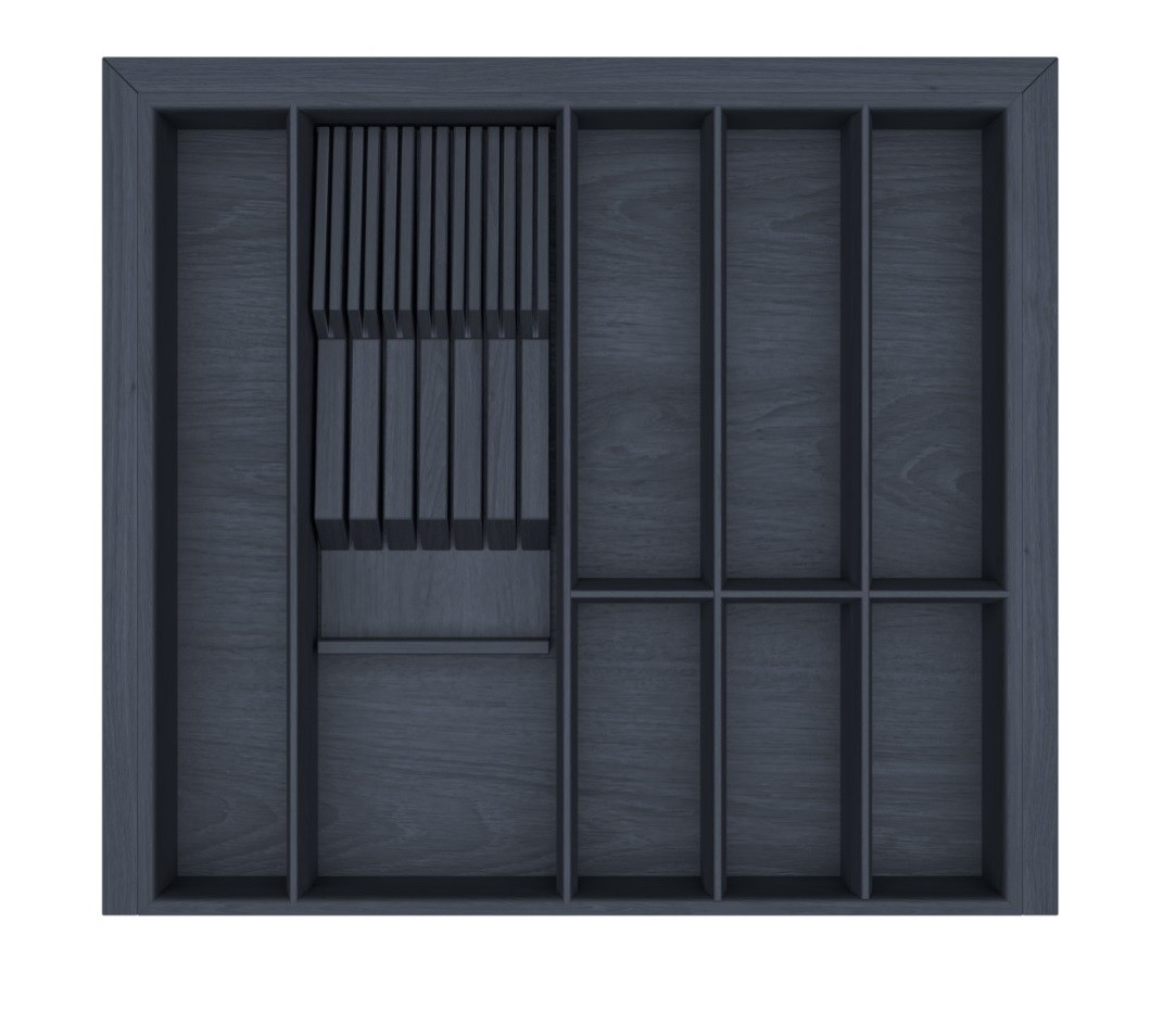 Лоток из натурального дуба в трендовом черном цвете с выраженной древесной структурой, полностью адаптирован для низких выдвижных ящиков глубиной 500 мм.Описание товара: