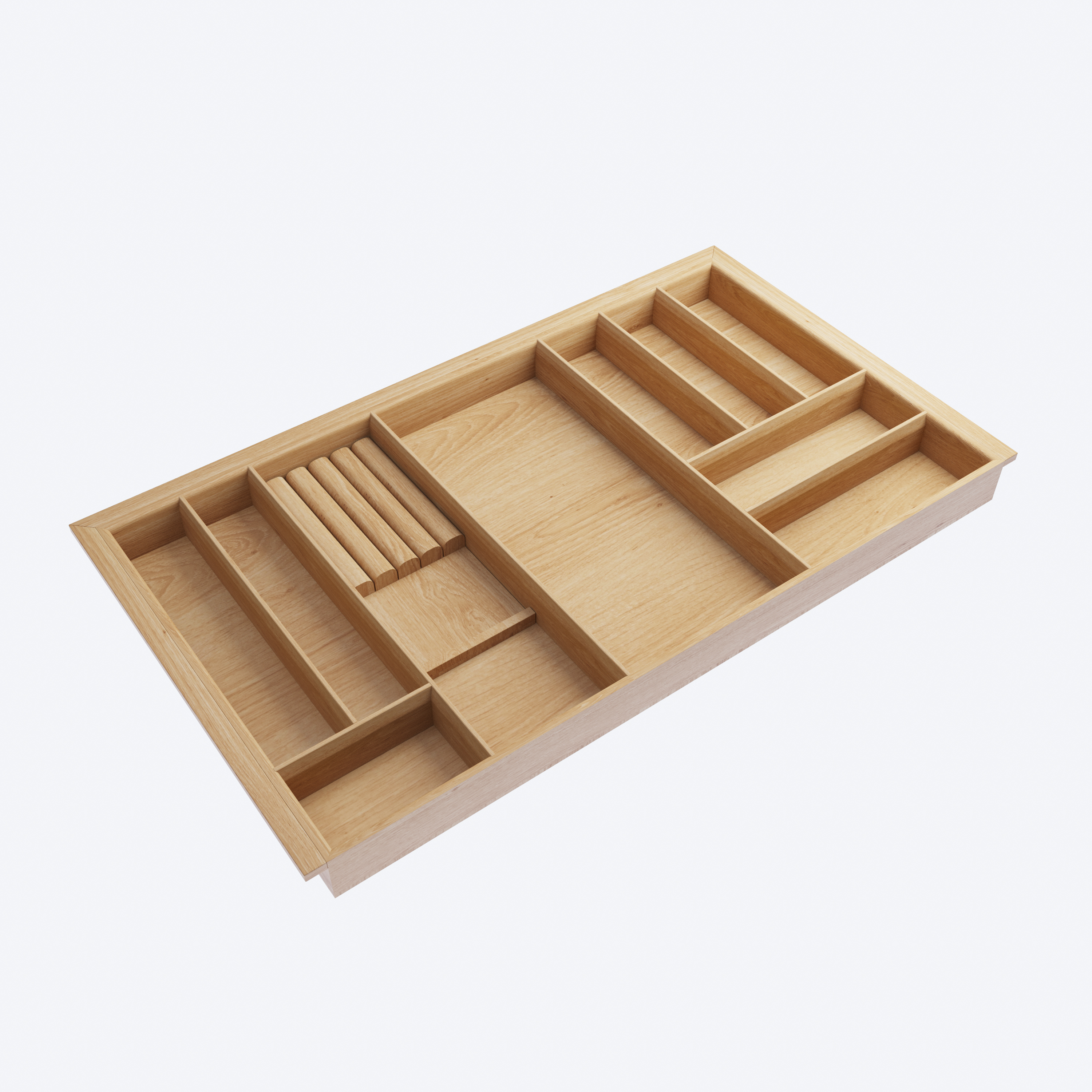 Лоток TETRIS 90V2 из массива дуба для столовых приборов в низкий ящик на ширину фасада 900 мм. дуб светлый.