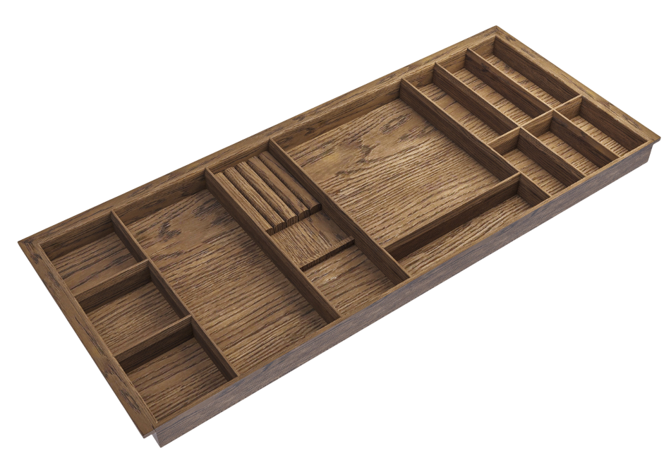 Деревянный лоток TETRIS 1200V3 из массива дуба для столовых приборов в низкий ящик на ширину фасада 1200 мм, цвет дуб рустик.